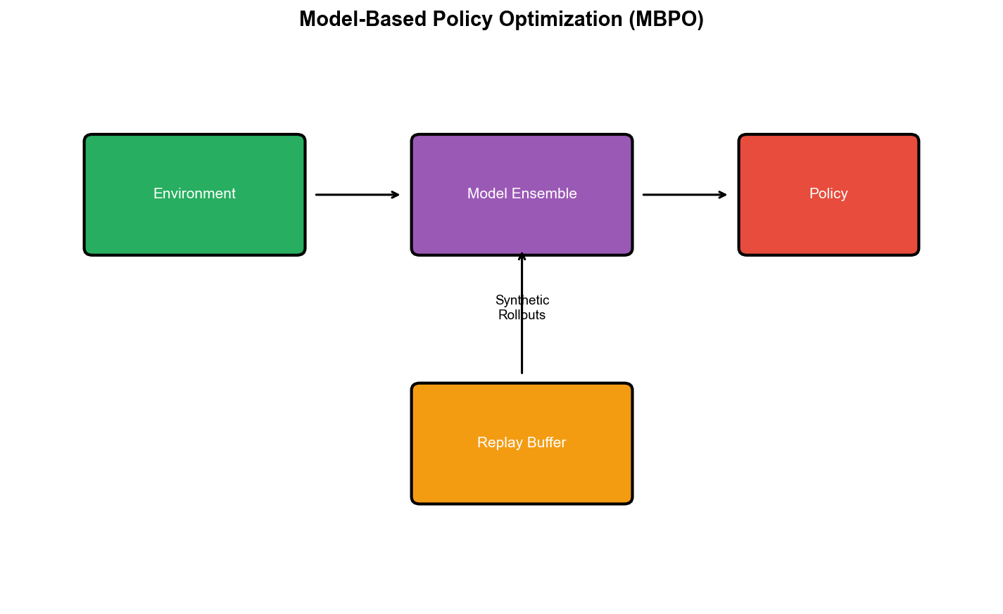 共同点:都是"用模型生成数据,用 Model-Free 算法学策略"的框架。