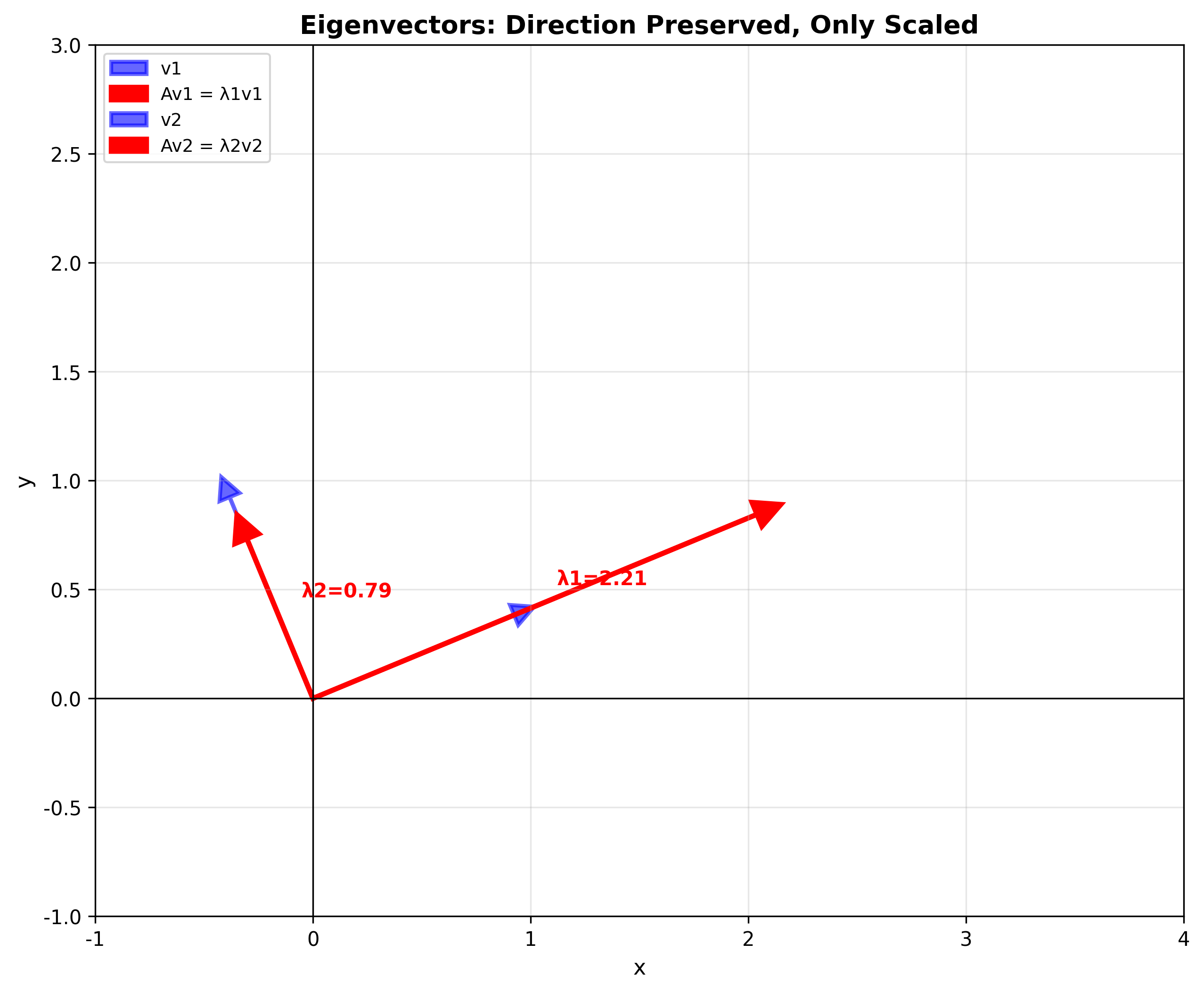 核心直觉 :找到那些"方向不变"的特殊向量,复杂的变换就变成了简单的缩放。