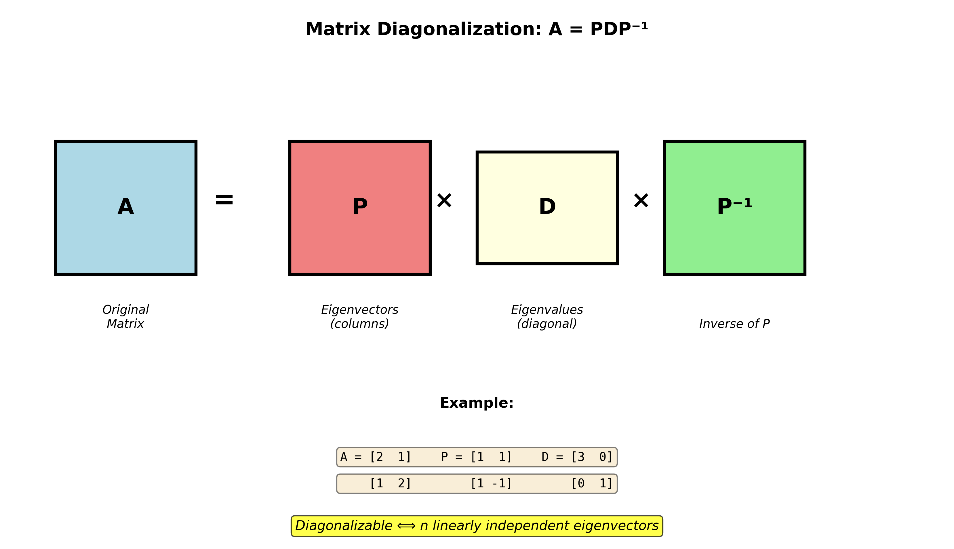 构造矩阵: - (特征向量作为列) - (特征值在对角线上)