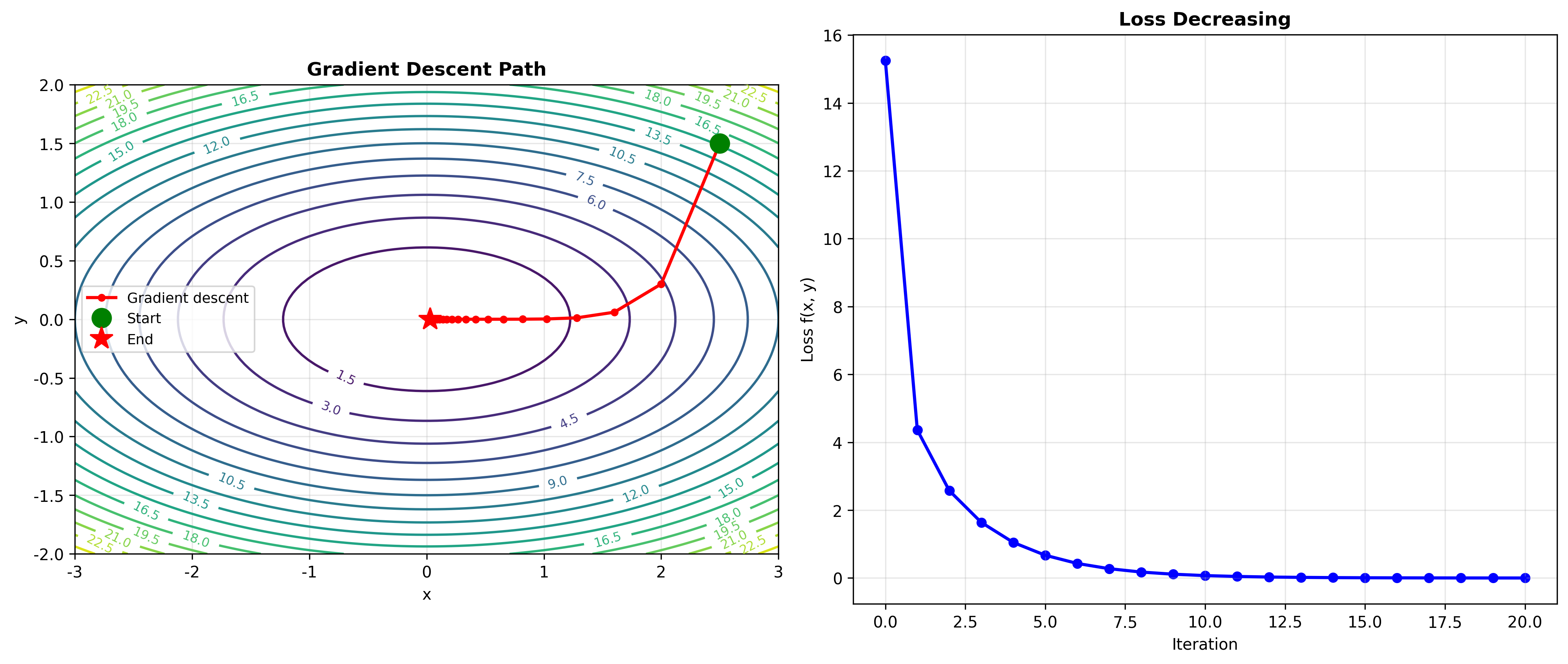 这就是梯度下降法的理论基础:要让函数值下降最快,就沿着负梯度方向走。