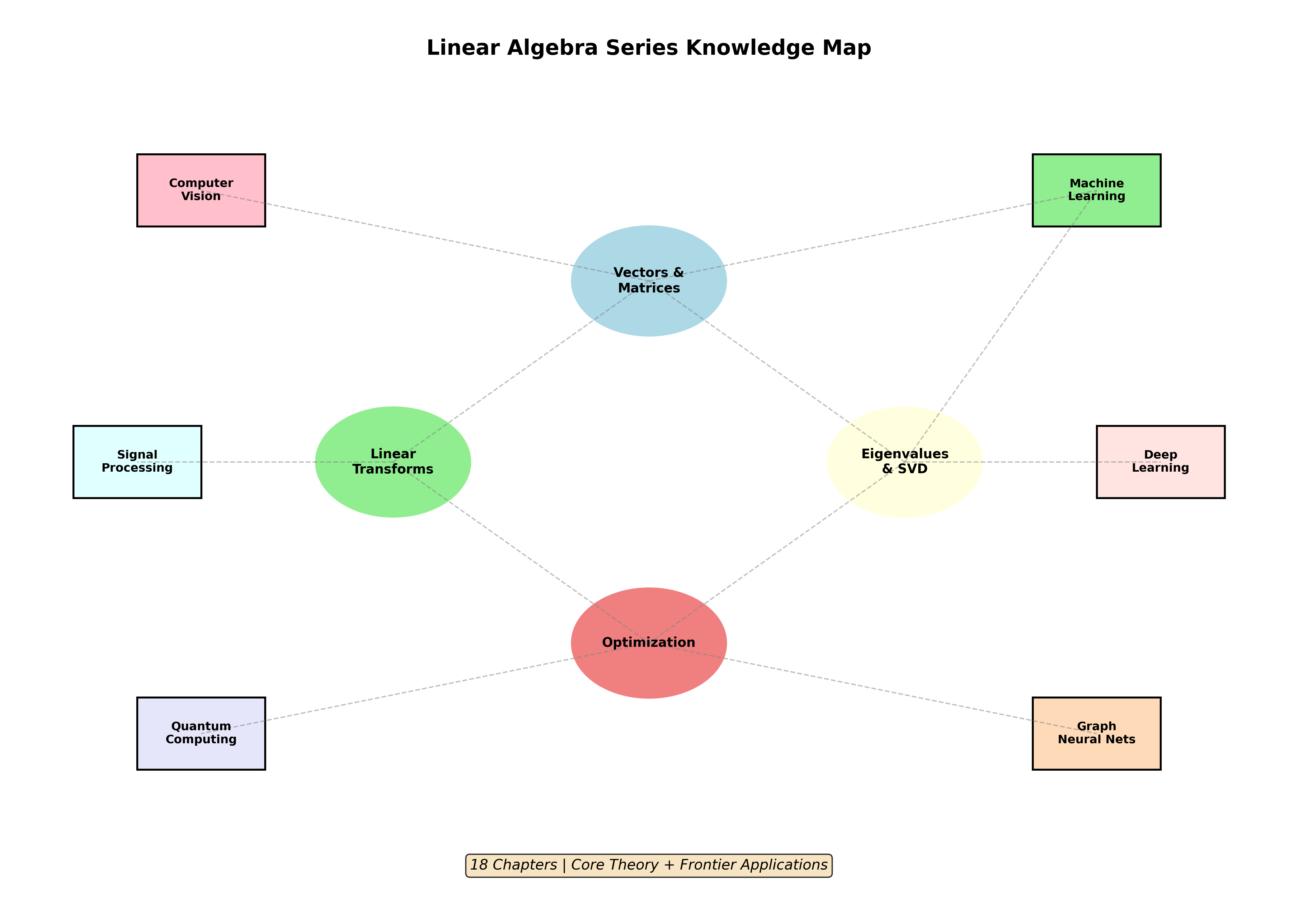 我们走完了线性代数的漫长旅程。从最初的向量和矩阵,到特征值分解、 SVD 、张量分析,再到机器学习和深度学习中的应用——每一章都在揭示线性代数这门学科令人惊叹的普适性。现在,让我们把目光投向最前沿:量子计算、图神经网络、大语言模型,以及那些正在改变世界的技术。这些领域看似高深莫测,但其核心依然是我们熟悉的线性代数。