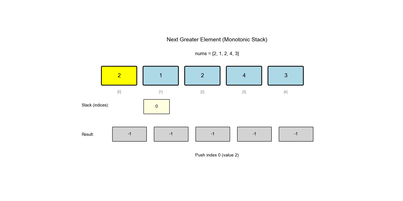 为什么单调栈能优化? 暴力法对每个位置都要向后查找,而单调栈利用了"如果当前元素比栈顶大,那么它可能比栈中其他元素也大"这一性质,避免了重复比较。