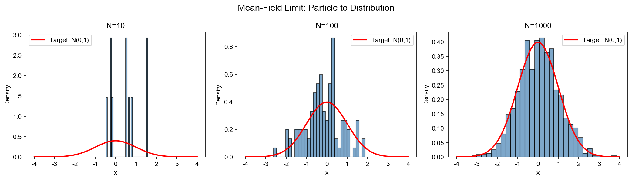 4. Mean-Field 极限是什么? - 简单说:当神经元数量趋于无穷时,单个神经元不重要,重要的是神经元的"密度分布" - 生活类比:研究交通流量,不关心具体哪辆车在哪,只关心车流密度 - 为什么重要:连续密度的演化由 PDE 描述,可以用微分方程理论分析