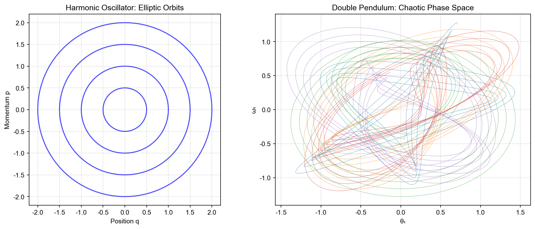 "哈密顿系统 = 能量守恒的动力学,相空间轨迹是能量曲面上的'舞蹈'"