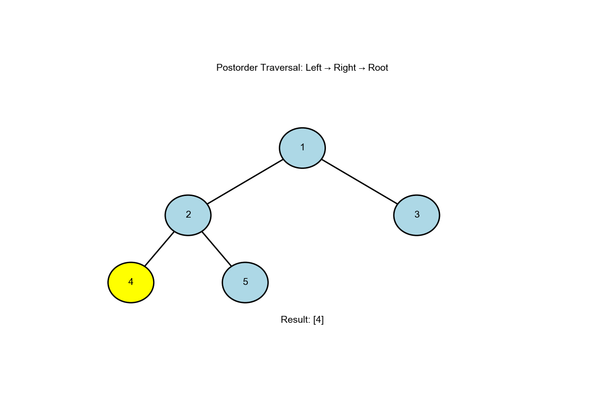 - Postorder: Root last (Left-Right-Root)