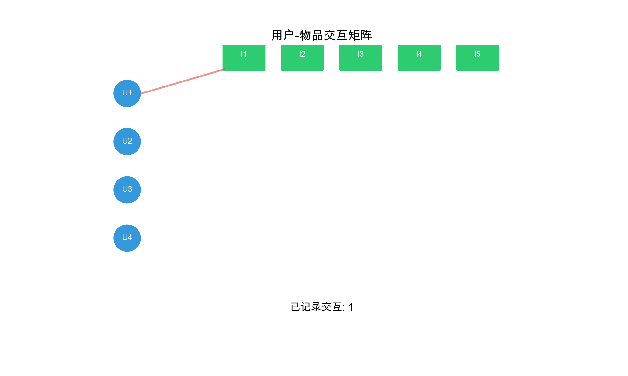 formalize this. We have: -\(U = \{u_1, u_2, \dots, u_m\}\): set of\(m\)users -\(I = \{i_1, i_2, \dots, i_n\}\): set of\(n\)items -\(R \in \mathbb{R}^{m \times n}\): user-item rating matrix, where\(r_{ui}\)is user\(u\)'s rating for item\(i\)The matrix\(R\)is sparse – most users have rated only a tiny fraction of items. The goal of collaborative filtering is to predict missing entries in\(R\).