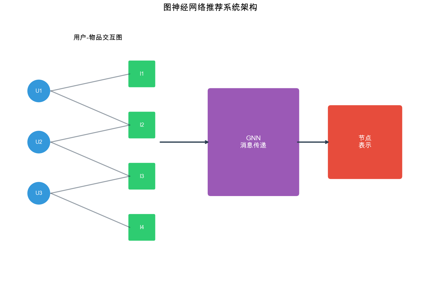 permalink: "en/recommendation-systems-7-graph-neural-networks/" date: 2024-06-01 10:30:00 tags: - Recommendation Systems - GNN - Social Recommendation categories: Recommendation Systems mathjax: true --- When Netflix recommends a movie, it's not just looking at what you've watched — it's analyzing a complex web of relationships: which movies are similar to each other, which users share your taste, and how these connections form patterns across millions of interactions. This intricate network of relationships is exactly what graph neural networks (GNNs) excel at modeling. Unlike traditional recommendation approaches that treat users and items as isolated entities, GNNs capture the rich structural information encoded in user-item interaction graphs, social networks, and knowledge graphs.